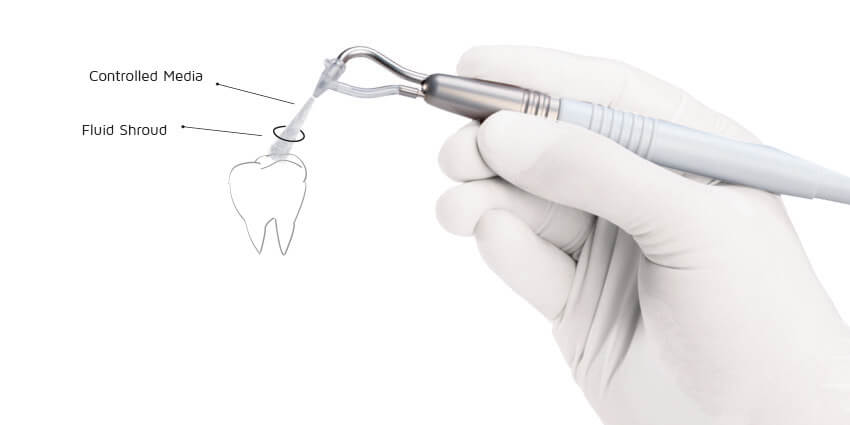 利用含有碳酸氫鈉的顆粒合併高壓及水柱,以特殊的噴砂機移除牙齒表面色素沉澱,可以有效去除菸垢、檳榔垢、咖啡垢、茶垢等,每次療程約15~20分鐘,只能恢復原有的牙齒顏色,但無法將牙齒變白.