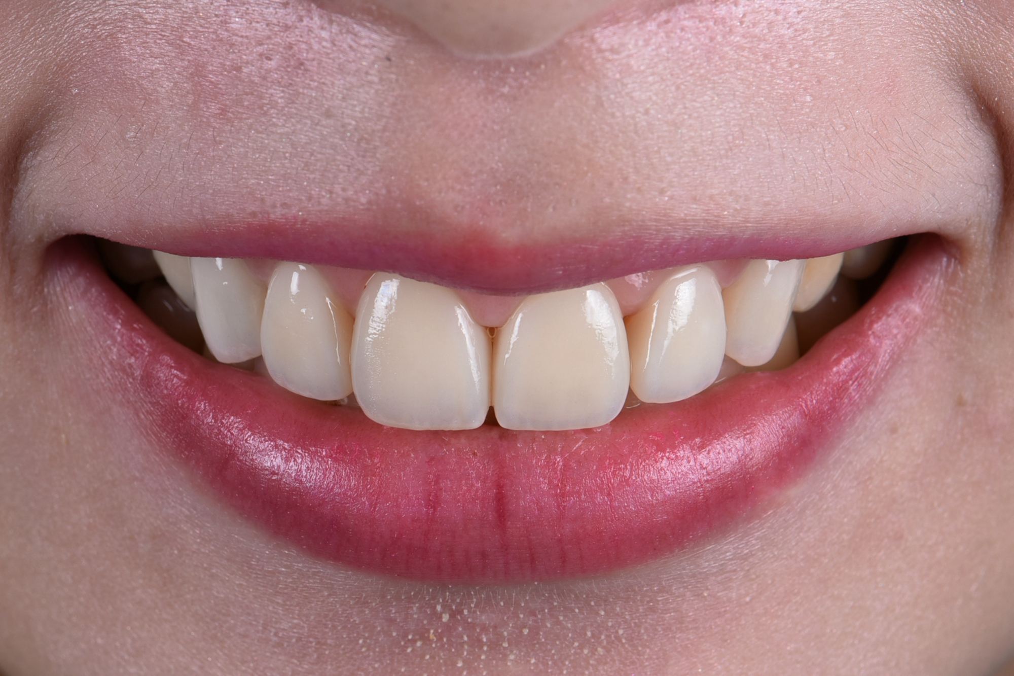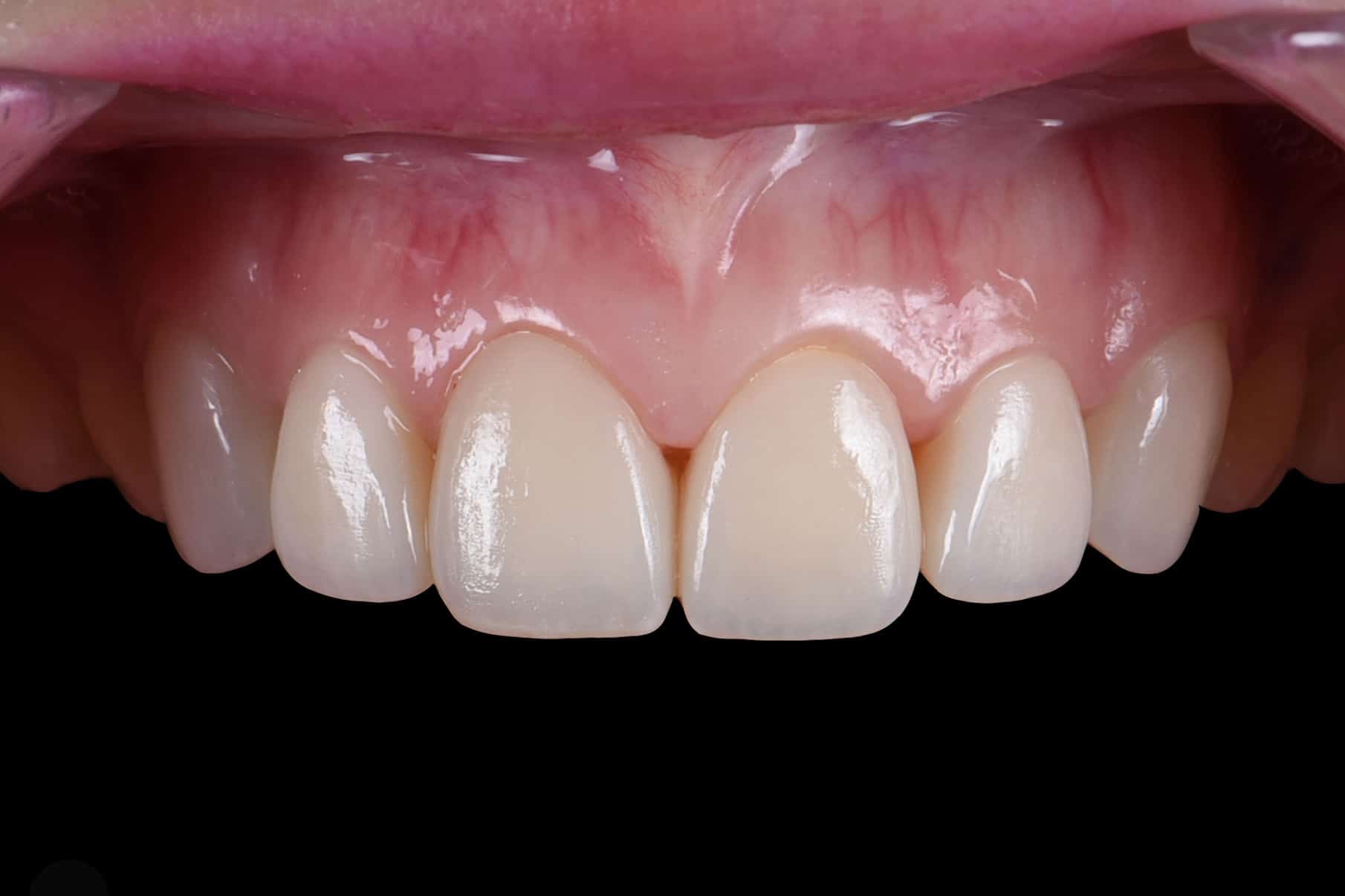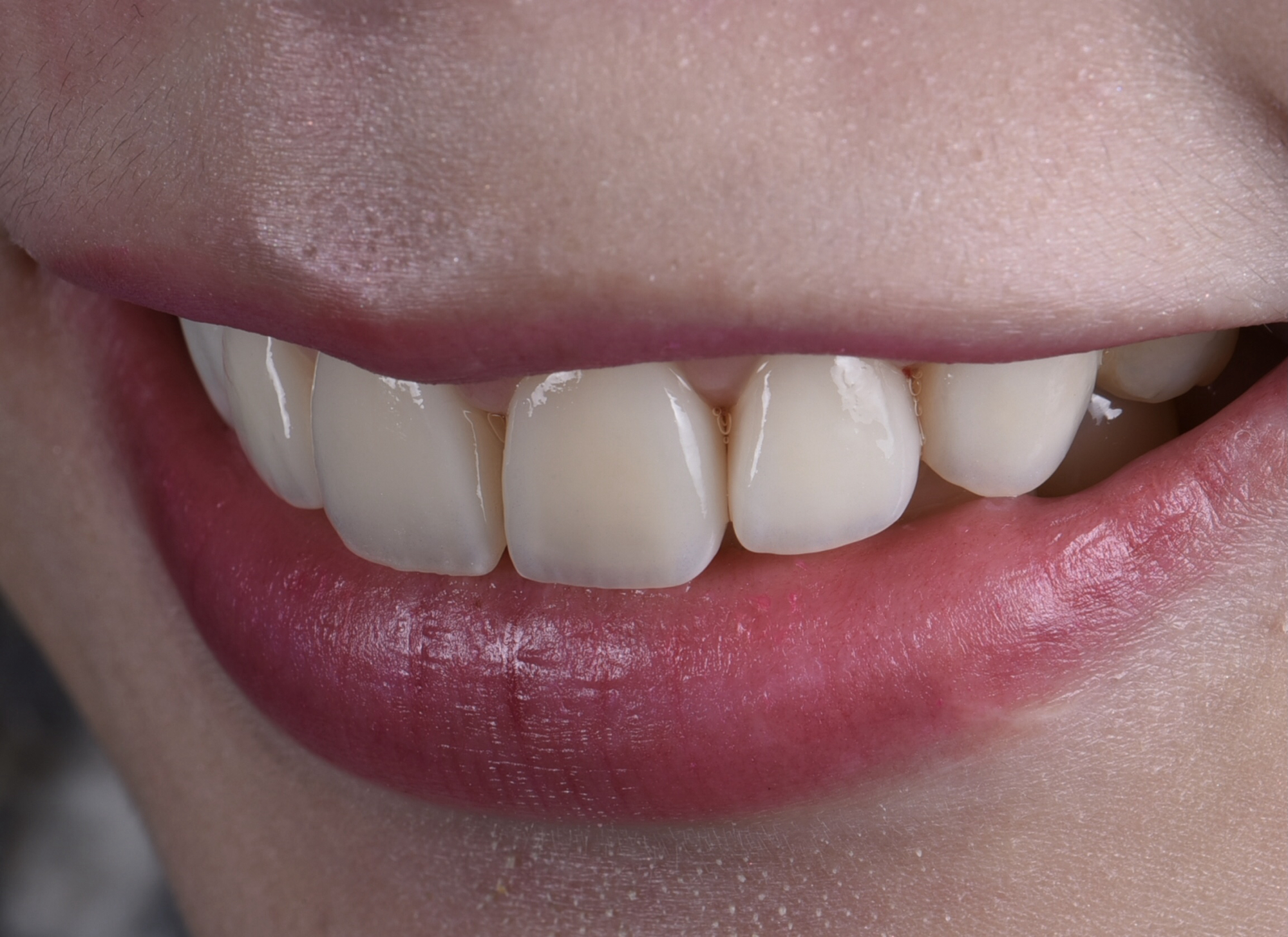 通常這樣的問題又合併補牙染色的患者,非常適合用陶瓷貼片來改善.藉由貼片的厚度跟表面的光澤,就可以達到視覺上讓門牙突出且美白的效果.以下便以一個例子,來介紹陶瓷貼片如何改善門牙泛黃與補牙染色.